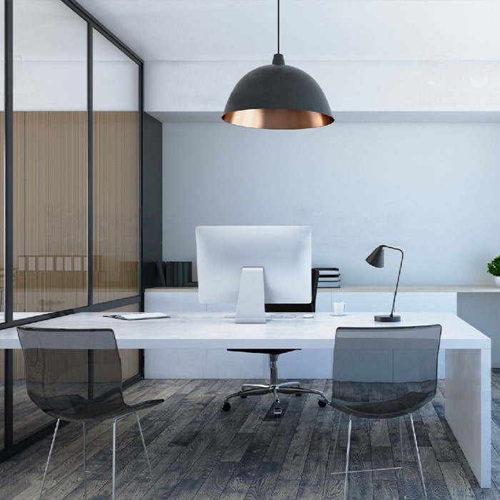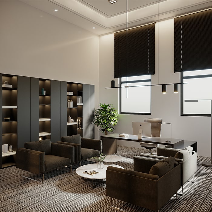 Teamwork between our interior designers and our internal technical professionals produces workspaces that are creative, simple and traverse, and have a human touch. They have a beautiful design that is very functional. Our office interior design service is fully integrated to offer sustainability and reliability and takes into account the staff's well-being.